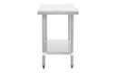 Deze RVS werktafels van Vogue hebben als werkblad een omkeerbare snijplank. Zo heeft u veel ruimte om bijvoorbeeld groenten te snijden en vis te fileren. De snijplank is gemaakt van kunststof met een hoge dichtheid en gaat daardoor lang mee in zelfs de meest drukke en veeleisende keukens. Het stalen frame en onderblad bieden goede ondersteuning en zijn eenvoudig te reinigen. Een hygiënische unit, perfect voor professioneel gebruik.