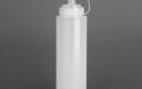 Deze transparante knijpfles is gemaakt van flexibel polyethyleen en heeft een schroefdop en wijde hals, voor eenvoudig bijvullen. Dankzij de polyethyleen constructie is de fles duurzaam, sterk en eenvoudig te reinigen. Deze doorzichtige fles is perfect voor allerlei soorten sauzen, van ketchup en mosterd tot mayonaise en knoflooksaus. Bovendien kunt u de fles gebruiken om borden of desserts te decoreren. Voor gebruik dient de spuitmond op gewenste grootte geknipt te worden.