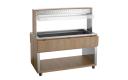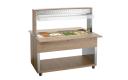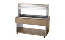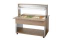 De mobiele buffetoplossing in een modern houtdesign - De buffetwagen met hoestbescherming en led-verlichting voor 4 GN-containers 1/1 GN en houdt met het waterbad-principe gerechten behoedzaam en aangenaam warm bij het buffet.