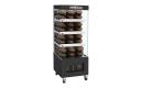 Origineel ontwerp met een combinatie van een cilindrische blaasturbine en warmtestralers.