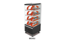 Zelfbedieningsdisplay met 4 - 5 planken onder een hoek van 5°. Dit maakt een promotionele uitstalling van uw goederen mogelijk.