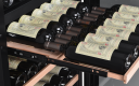 Zwarte gepoedercoat staal wijnkoelkast met 13 roosters geschikt voor 154 wijnflessen, LED verlichting, de deur is omkeerbaar.