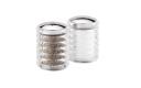 Eigentijdse geribbelde peper- en zoutvaatjes van acryl, met chrome deksels van het merk Cole & Mason. Aantrekkelijk en handig voor op tafel.